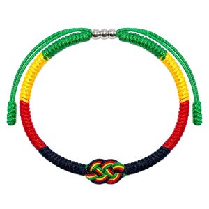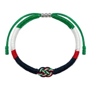 手工编织同心结手链银珠串珠混色绳编可调节编织美国国旗色手链
