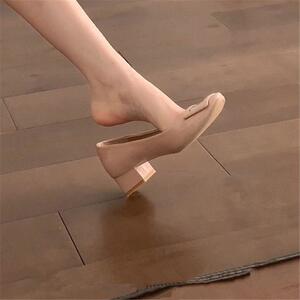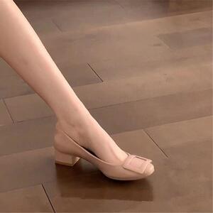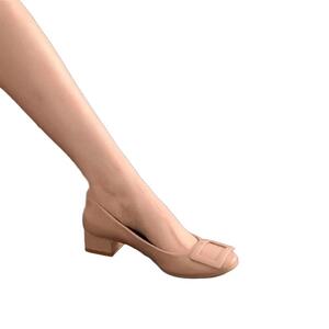 纯欲风法式气质单鞋女2025年新款圆头方扣浅口裸色气质伴娘鞋粗跟