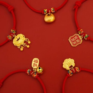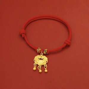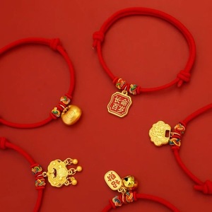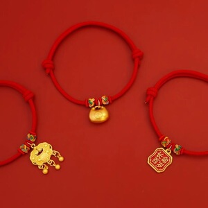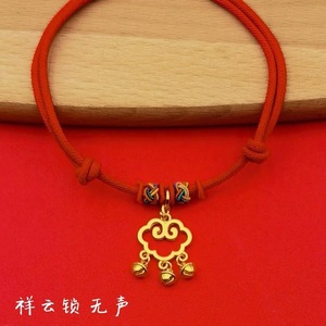 宠物新年长命锁长命百岁编绳项圈春节猫咪狗金色项链红色装饰无声