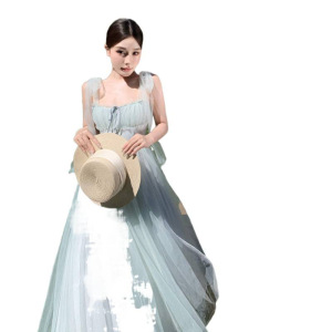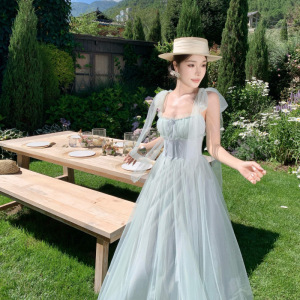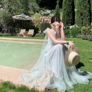 绿野仙踪绿色网纱吊带连衣裙女夏海边度假氛围感气质长裙超仙裙子