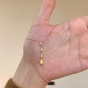 蒂奇999纯银拉丝工艺闪钻水滴项链女小众高级感水滴流苏锁骨链潮