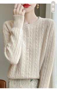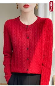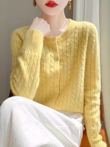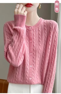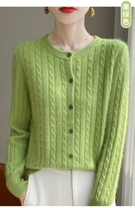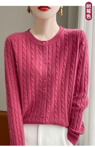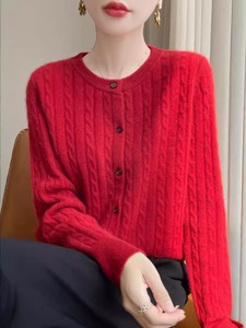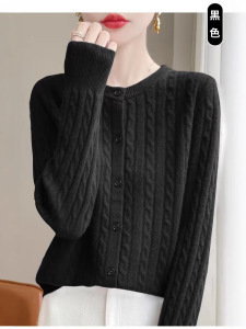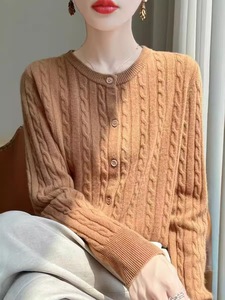 25经典圆领针织衫老钱风女麻花开衫外套纯色绞花洋气长袖毛衣外搭