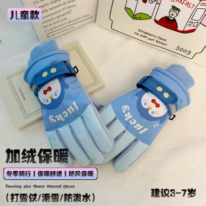 新款儿童滑雪手套冬季保暖加绒加厚户外运动手套卡通恐龙宝宝手套
