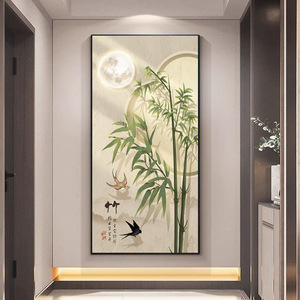 侘寂风led带灯画入户玄关装饰画新中式竹子客厅走廊过道挂画壁画
