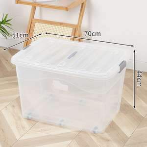 特大号透明储物箱多功能手提塑料收纳箱带轮衣物被玩具车载整理箱
