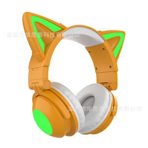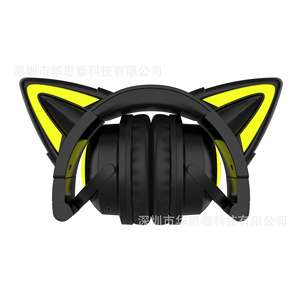 新款发光猫耳朵无线蓝牙耳机七色炫彩头戴式全包耳立体声电竞动漫