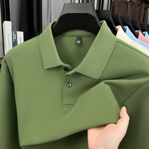 100%纯棉秋冬新款纯色长袖男士POLO衫商务休闲翻领T恤打底上衣