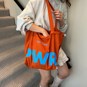 2025秋冬新款抽绳防水尼龙包日系托特包通勤手提袋单肩包大容量包