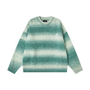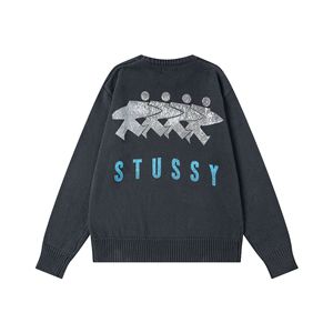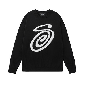跨境欧美stussy字母蚊香大提花针织衫斯图西圆领休闲宽松毛衣男女