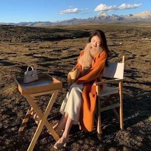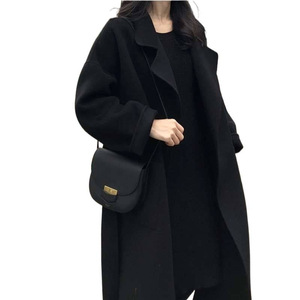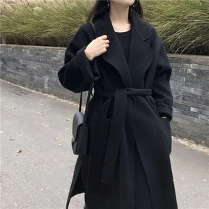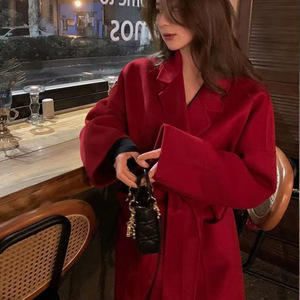 双面羊绒大衣女中长款宽松韩国手工系带羊毛大衣加厚毛呢外套
