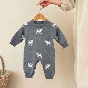 ins2025春秋婴幼儿连体衣男女宝宝针织提花可爱小鹿满月周岁礼服
