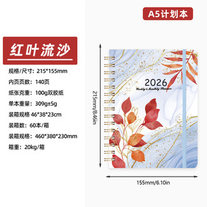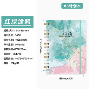 2026外贸计划本手绘日程本高颜值花卉线圈本跨境笔记本a5本子定制