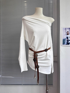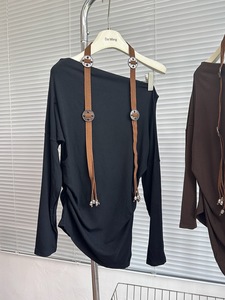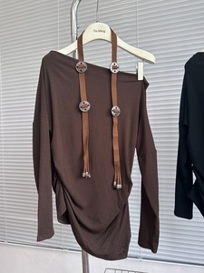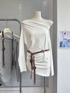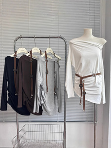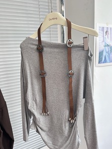 一字领长袖T恤2025新款秋季露肩收腰显瘦斜肩一字肩绝美上衣女潮
