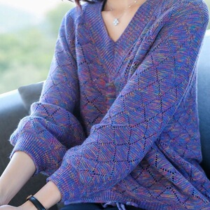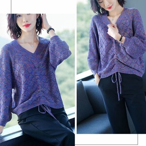 镂空V领抽绳2025年春秋女装上衣新款打底衫薄款宽松大码韩版毛衣