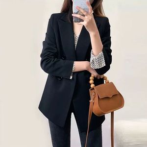 新款黑色春秋小西装女外套宽松新品双排扣新品轻熟