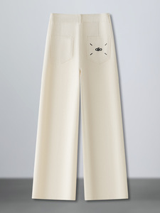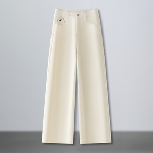 直筒裤女2025新款软牛仔高腰窄版阔腿裤刺绣垂感百搭女士休闲裤子