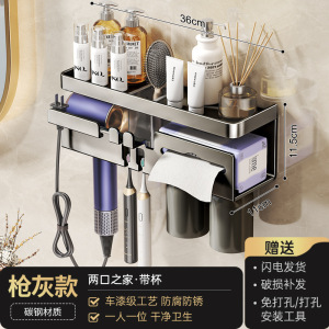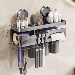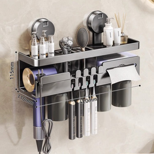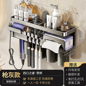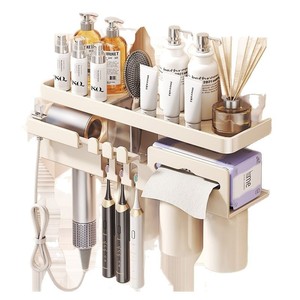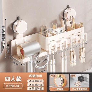 鼓式吸盘奶白牙刷架四人款(无杯)+吹风机架