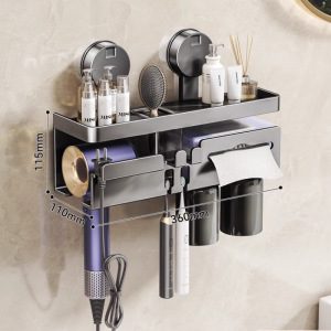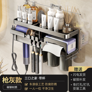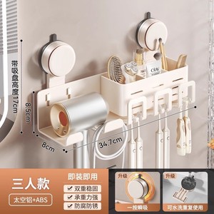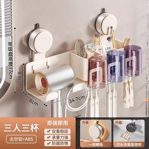 鼓式吸盘奶白牙刷架三人款(无杯)+吹风机架