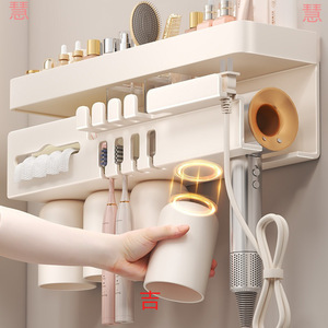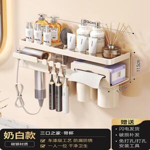 奶白【磁吸杯*3】多功能牙刷架