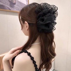 仙气云朵泡泡抓夹气质高级感网纱盘发鲨鱼夹羽毛蓬松后脑勺头花女