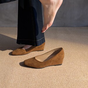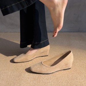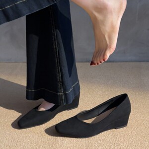 2025秋季新款时尚百搭方头绒面单鞋女一脚蹬通勤鞋软底浅口坡跟