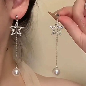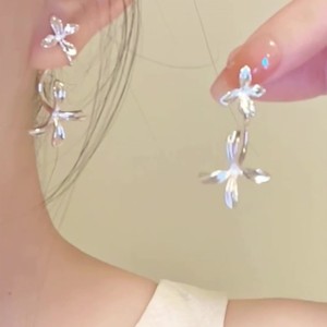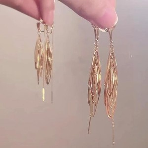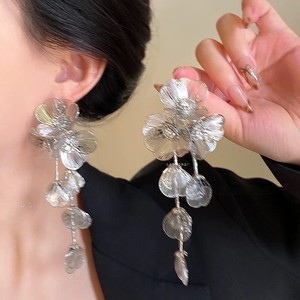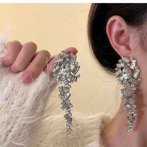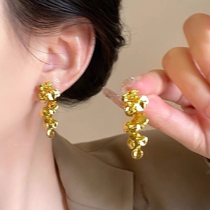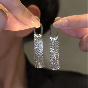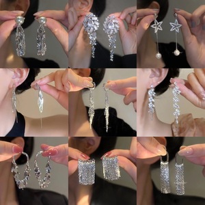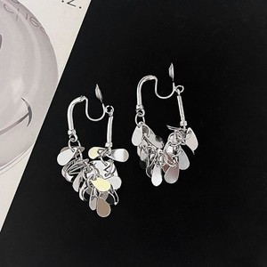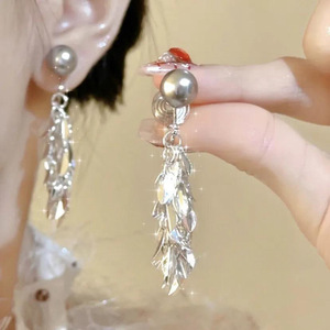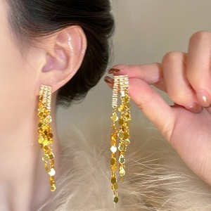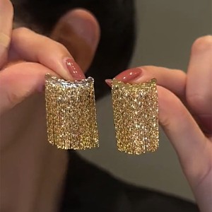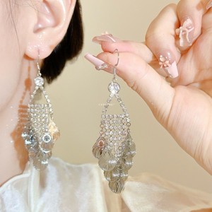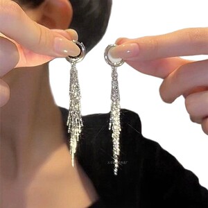 超闪银色长款金属流苏夸张耳扣高级感轻奢小众设计气质百搭耳环女