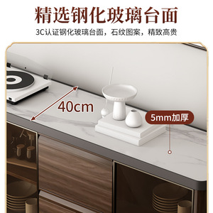 【实木板材】1.4米长餐边柜钢化玻璃台面