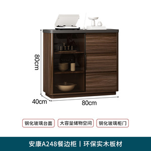 【实木板材】0.8米长餐边柜钢化玻璃台面