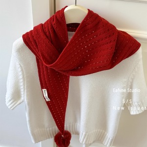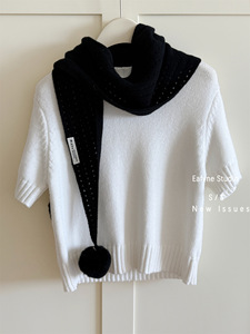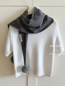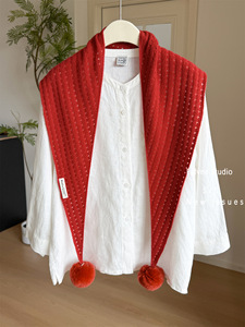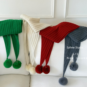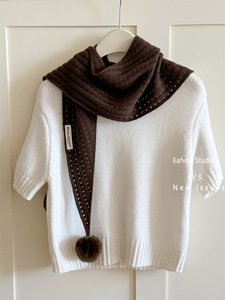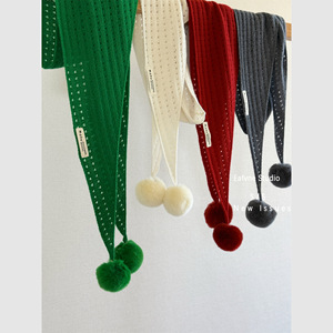 出口日韩100%绵羊毛针织三角巾女毛球款轻奢羊绒披肩保暖气质围巾