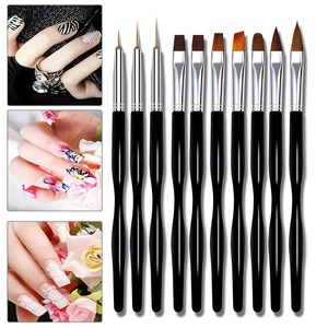 跨境新款10支小蛮腰杆专业美甲画笔套装美甲线条笔水晶笔平头光疗