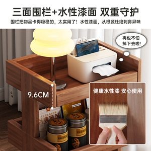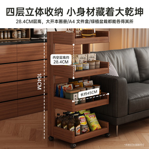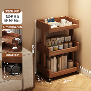 全实木置物架落地带轮书架可移动简易客厅沙发边几家用收纳储物架