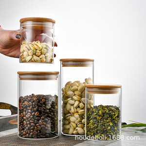 厂家直供玻璃密封罐厨房收纳罐茶叶罐木盖高硼硅玻璃罐密封储物罐