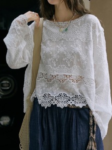 法式气质蕾丝全棉水洗蕾丝衫2025夏季立体镂空刺绣柔软透气上衣女
