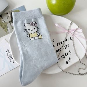 25年秋季新品KT猫猫白色袜子女中筒袜日系卡通棉袜ins堆堆袜可爱