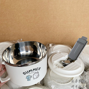 高颜值不锈钢泡面碗带盖学生上班族宿舍沥水泡面神器特厚多功能碗
