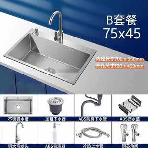 厨房水槽304不锈钢手工拉丝加厚单槽家用洗菜盆洗碗槽水池台下盆