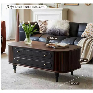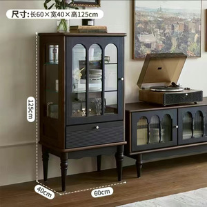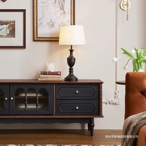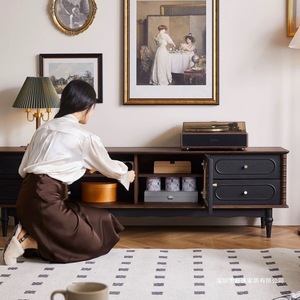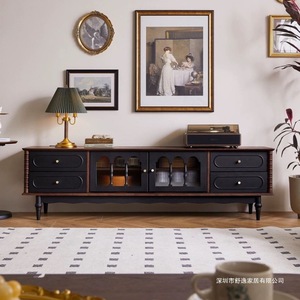 法式复古实木茶几电视柜黑色美式客厅落地储物柜收纳网红新款柜子