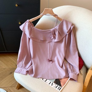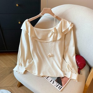 广州十三行高货爆款~荷叶边领花朵长袖衬衫女设计感小衫宽松上衣
