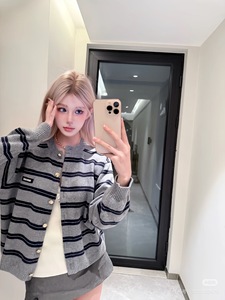 南油miu风纯原高版本条纹毛衣单排扣圆领新年红针织衫外套女秋