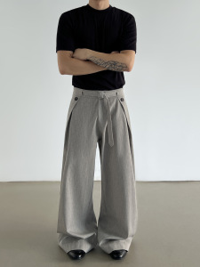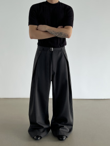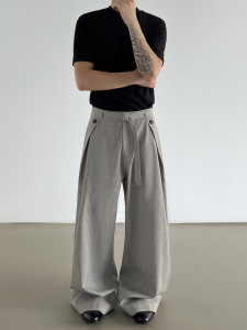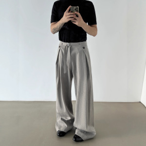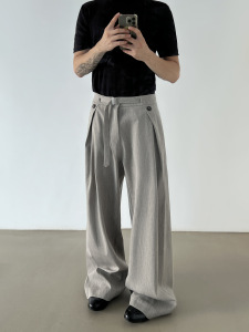 春秋季复古老钱风A字裤打褶亚麻西裤男款cleanfit直筒休闲阔腿裤