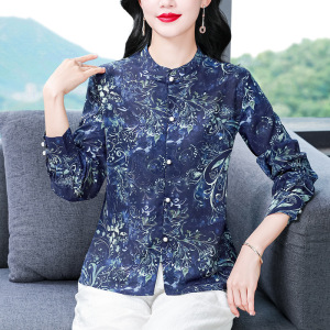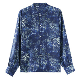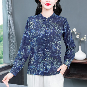 新中式印花衬衫女2025秋季新款国风盘扣小衫设计感上衣批发