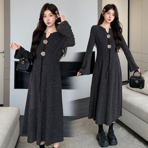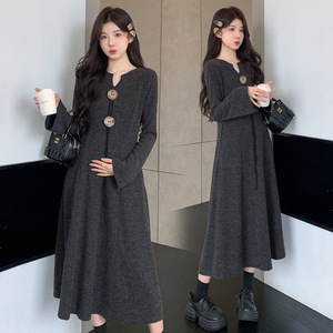 孕妇秋装新设计感针织连衣裙高级感辣妈韩系宽松通勤气质大摆长裙