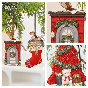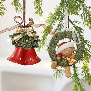 新款圣诞装饰复古立体树脂挂件 圣诞树装饰礼品铃铛树脂挂饰现货