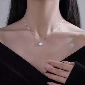 s999纯银小方块锆石项链轻奢时尚方糖锁骨链新款小众女高级感