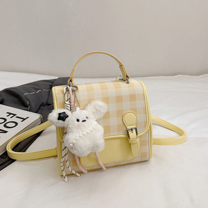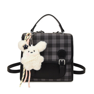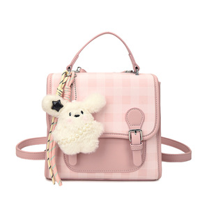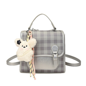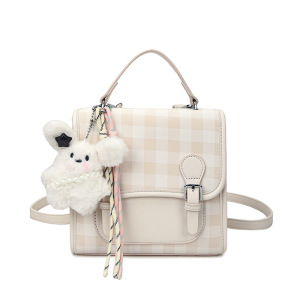 跨境学院风韩版小众双肩包2025新款休闲格纹撞色女包甜美手提小包