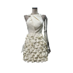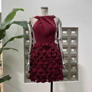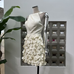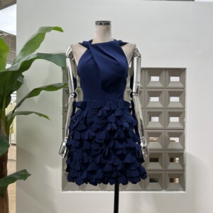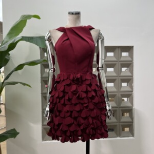 亚马逊优雅迷人收腰生日礼裙2025秋夏新款扭结手缝花瓣重工连衣裙