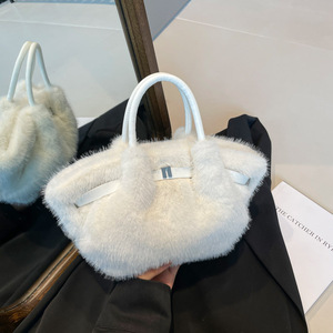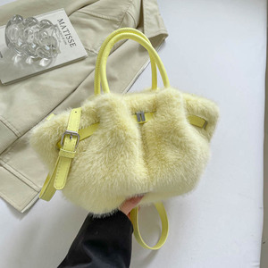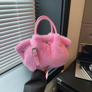 批发手提毛绒包包女士时尚毛茸褶皱单肩包洋气水桶包潮斜挎毛毛包
