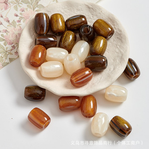大孔桶珠美拉德仿玉石纹理树脂珠散珠子手工diy项链串珠饰品配件