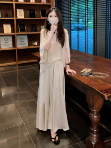 杏色上衣+半裙【夏装搭配一整套/今年流行/新款/漂亮/超好看/运动/女士/慵懒/别致/温柔/法式/甜