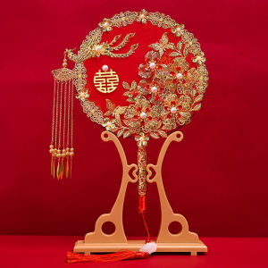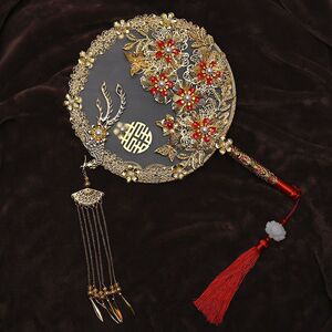 团扇新娘扇子女秀禾服diy塘铭成品喜扇手工中式结婚双面出嫁